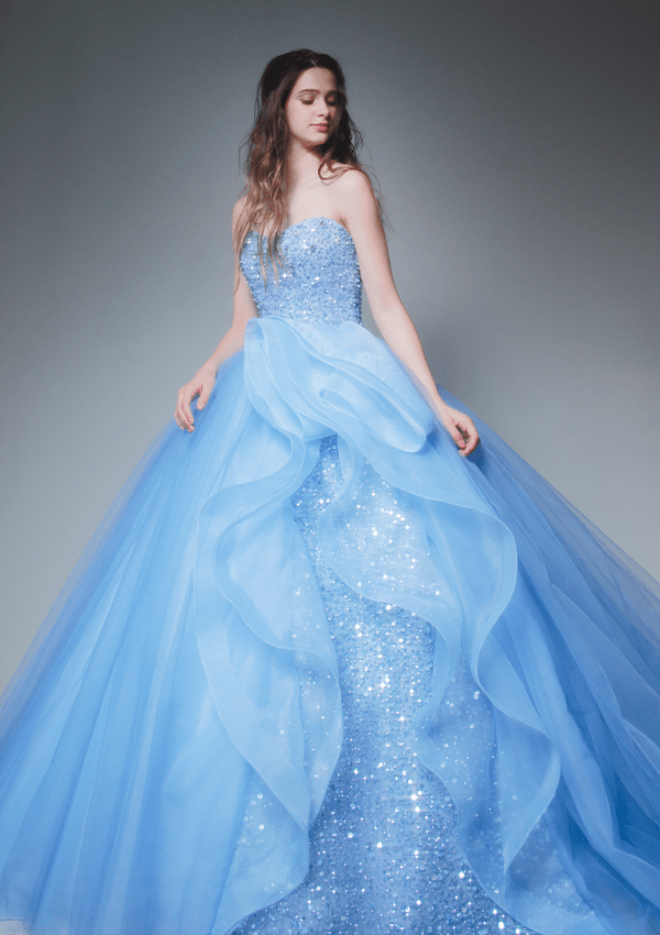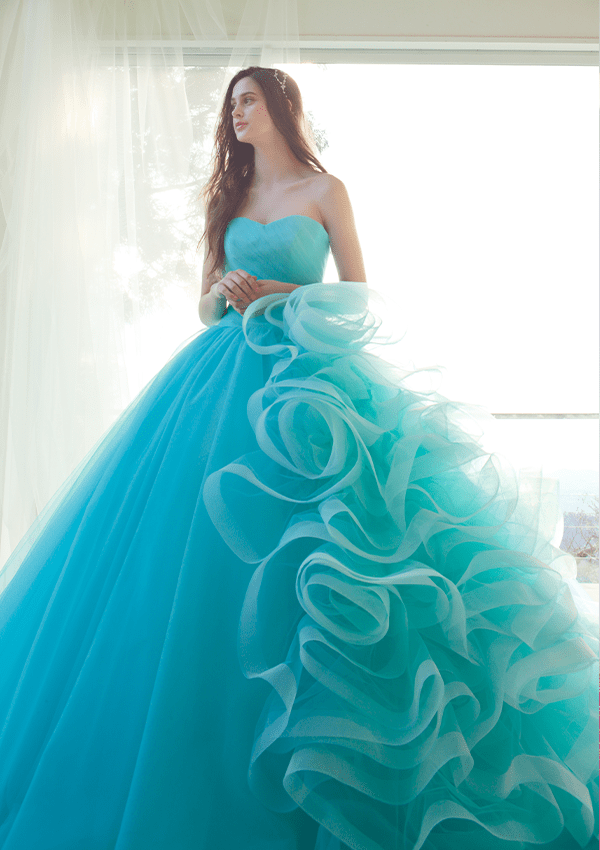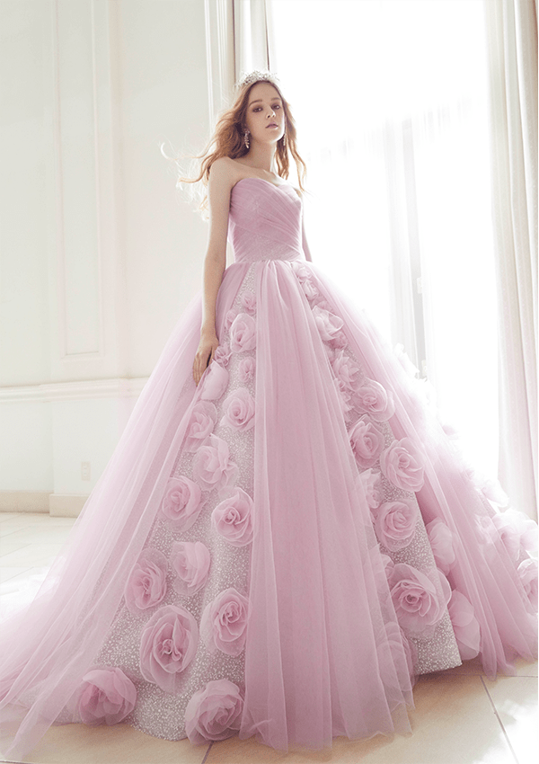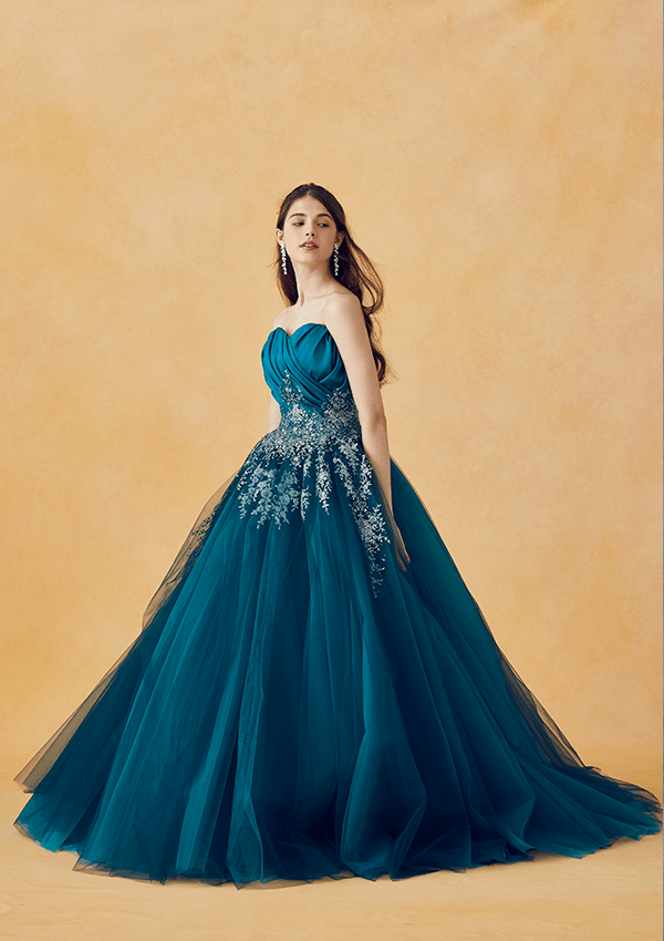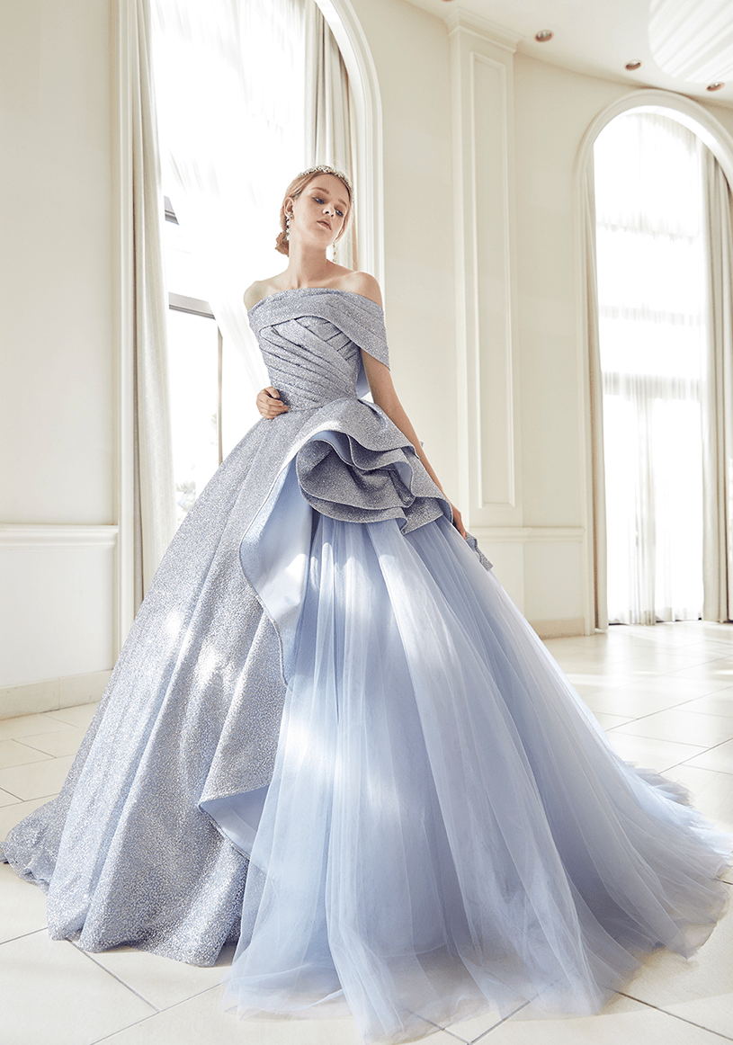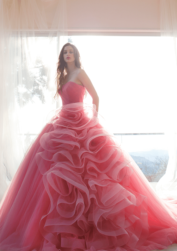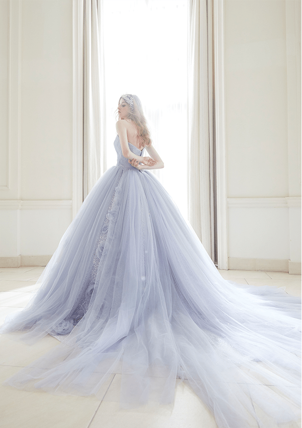 トレンドを取り⼊れつつも、洗練されたディテールから⽣まれる品格のある華やかさは、特別な⽇の花嫁を「360度の美しさ」で包み込みます。