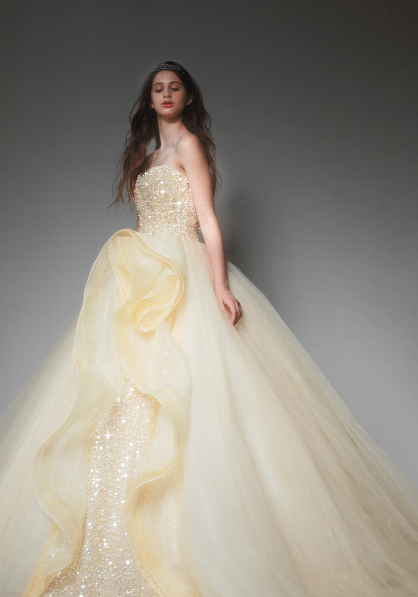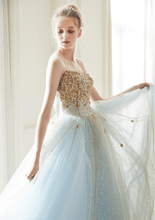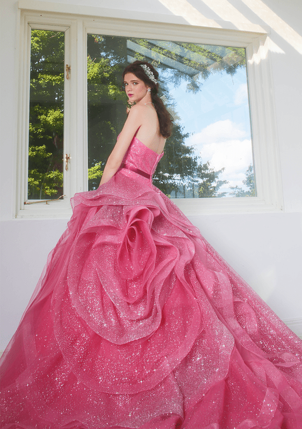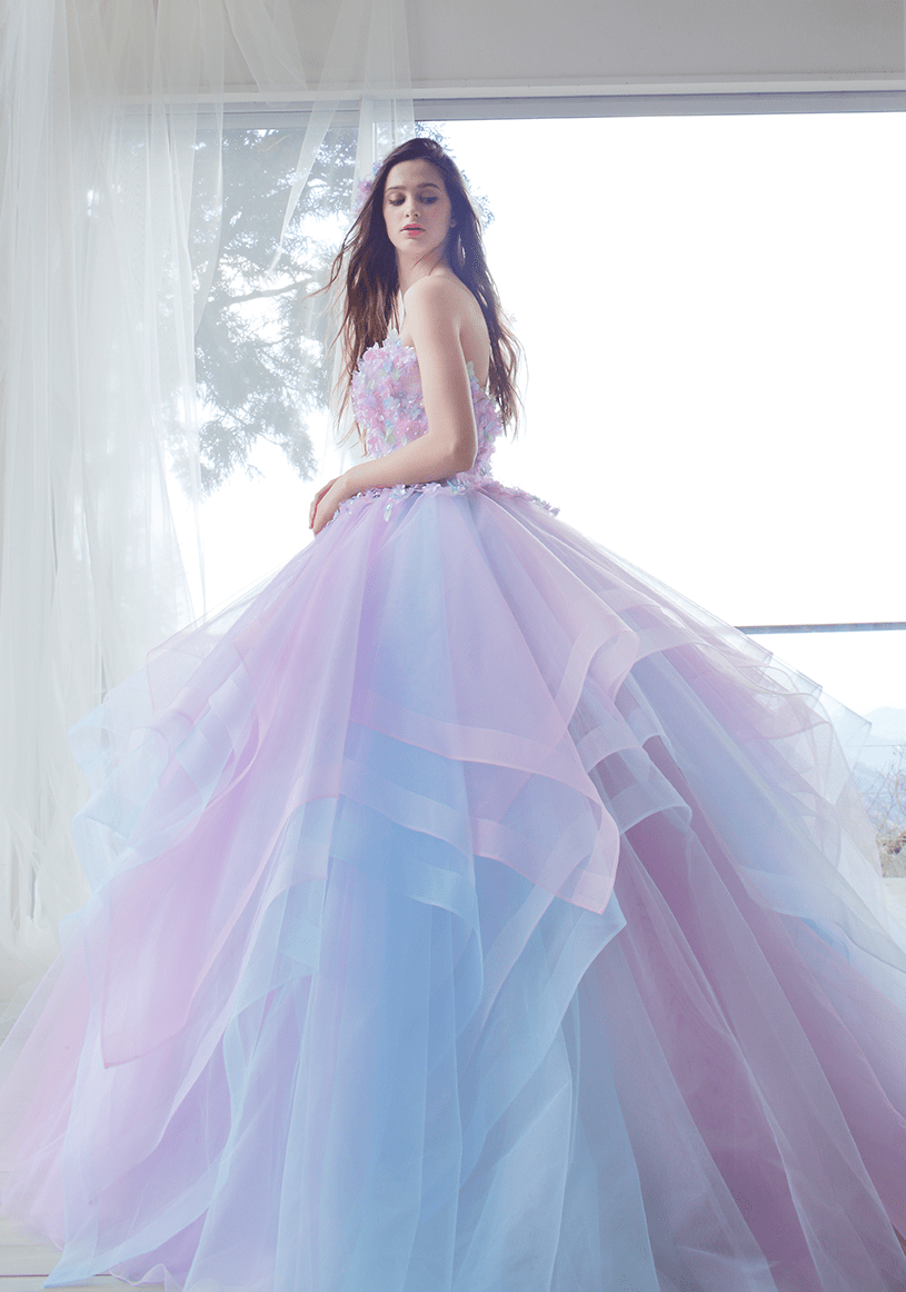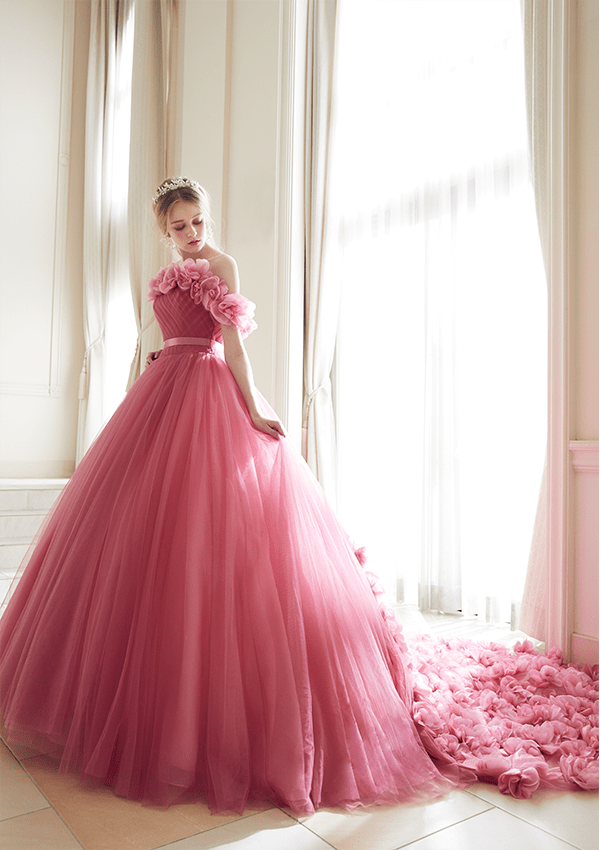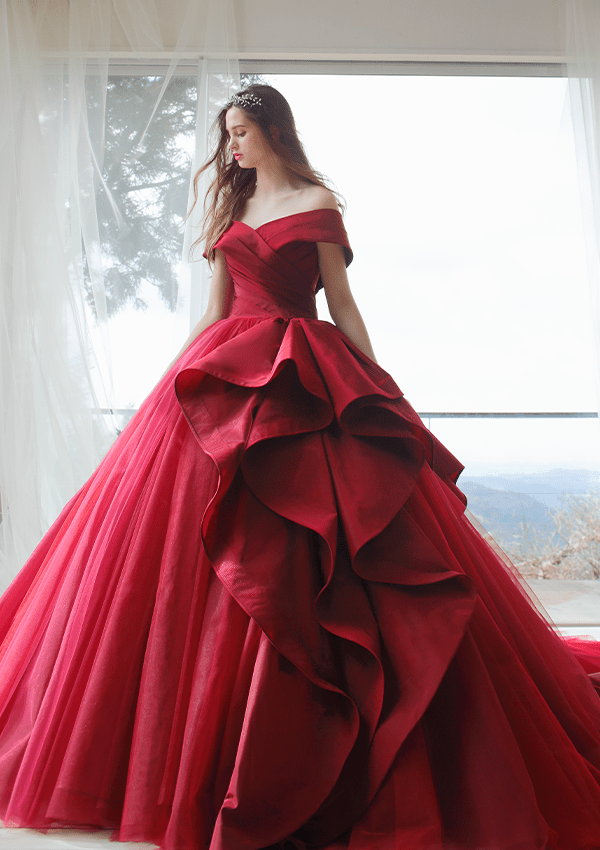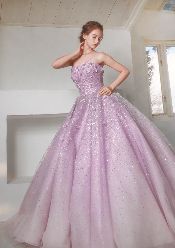 トレンドを取り⼊れつつも、洗練されたディテールから⽣まれる品格のある華やかさは、特別な⽇の花嫁を「360度の美しさ」で包み込みます。